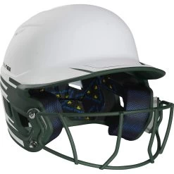 Rawlings Mach Ice Fastpitch Softball Batting Helmet With Face Guard (White/Dark Green)