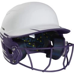 Rawlings Mach Ice Fastpitch Softball Batting Helmet With Face Guard (White/Purple)